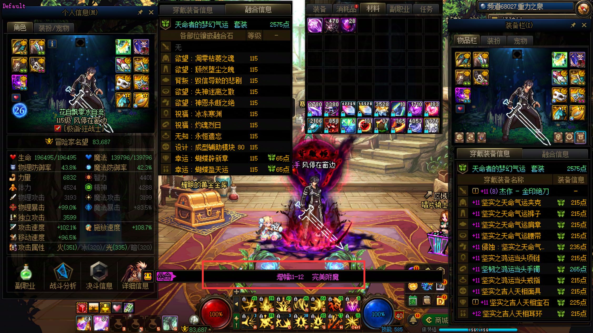 跨二【超一线进度精品号】【已购10套26年新春礼包+5套刀剑神域礼包】【105亿模拟伤害!强化12勋章+满收集箱+神器换装+2个神器龙武】【白15武器】【齐天大圣喜欢大闹天宫】【完美增幅12-13强化15武器龙透双至尊龙武剑帝】+【完美增幅12龙袍龙武桐人白剑剑神】连体【6个美增幅11-12龙袍剑宗+奶妈+魔神+天帝+合金战士+奶萝】送【4个增幅7-11奶萝+武神+念帝+奶爸+元素】