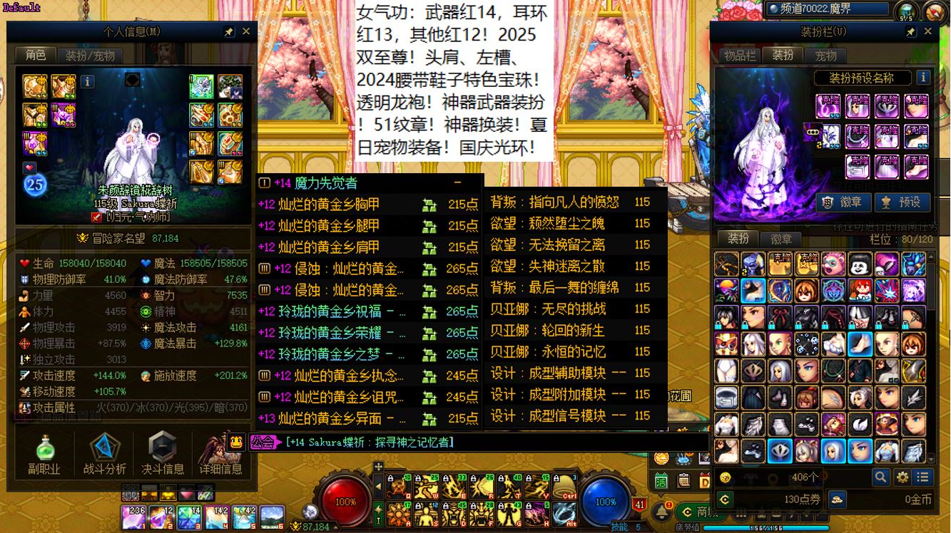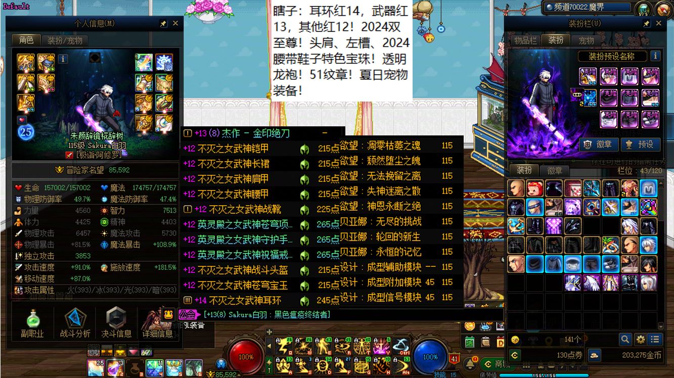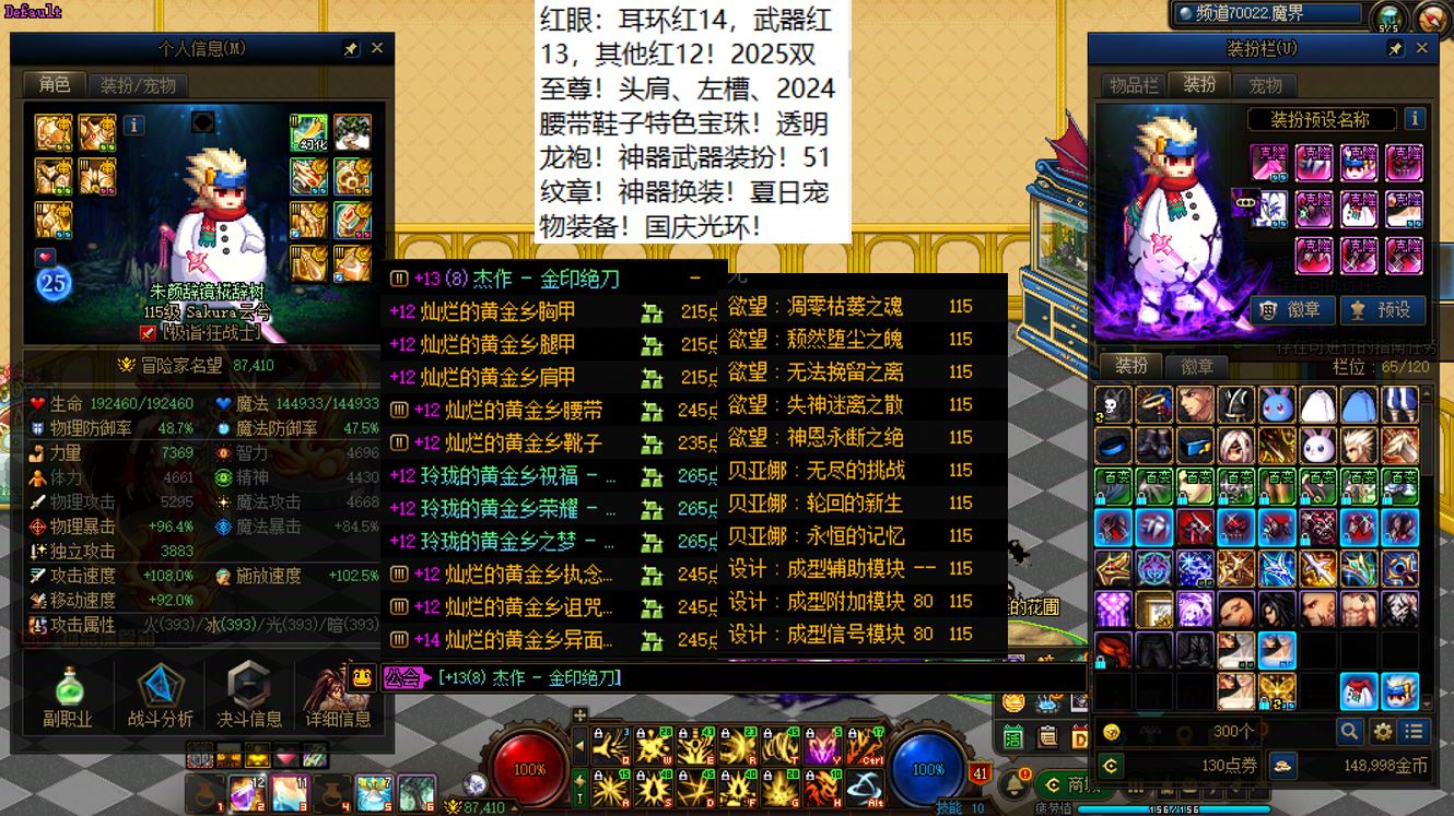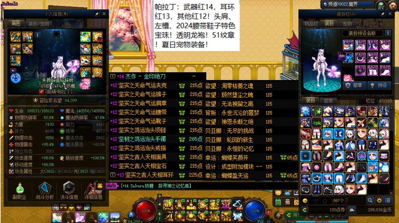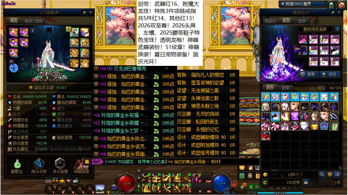 跨三A四川4区,红16武器红14特殊部位项链戒指其他红13剑帝+12个红12-14+15武器红12-13血法+5个红12-13奶角色+11个14武器红11-12打造角色!相当于【1把红16武器,1把白15武器,9把红14武器,4个红14耳环,11把白14武器】!这要是上号丢一轮,该多爽啊,不知道要成多少把金灿灿15武器和强无敌的红15耳环!剑帝【武器红16,特殊部位项链戒指6件红14,大龙珠附魔,灭龙剑+黄金乡】,12个红12-14角色【全部都是红14武器搭配红13耳环或者红14耳环搭配红13武器】,5个红12-13打造奶角色【武器左右槽基本都是红13的】,11个14武器角色【都是14武器+红13耳环配置】!【已买10套2026年套,仓库还有2套预约礼包】,【草树知春不久归,百般红紫斗芳菲】,序号250435
