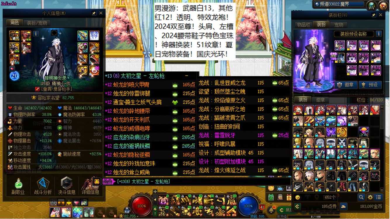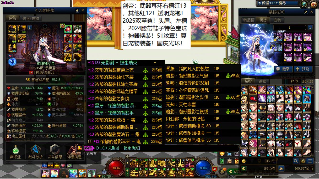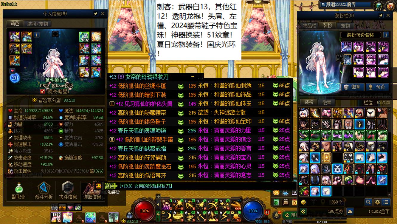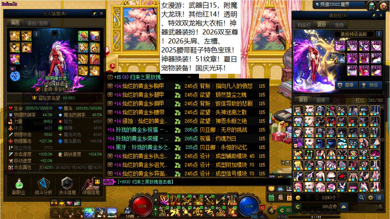 跨三b西南1区,15武器全身红14女漫游【神武】+15武器红13-14剑神【神武】+12个红12-13打造角色!【已买10套2026年套,仓库还有2套预约礼包】,已买40套2025年套和40套2024年套,女漫游【武器白15,大龙珠附魔,全身红14,大衣柜】,剑神【武器白15,耳环红14,其他红13】,带12个红12-13角色,女气功【武器耳环红13】,剑帝【武器耳环右槽3件红13】,魔神【武器耳环红13】,战法【武器白13】,男漫游【武器白13】,旅人【武器白13】,奶萝【左右槽手镯戒指4件红13】,奶爸【全身红12】,奶妈【全身红12】,刺客【武器白13】,奶弓【全身红12】,奶枪【全身红12】!【请君暂上凌烟阁,若个书生万户侯】,序号250443