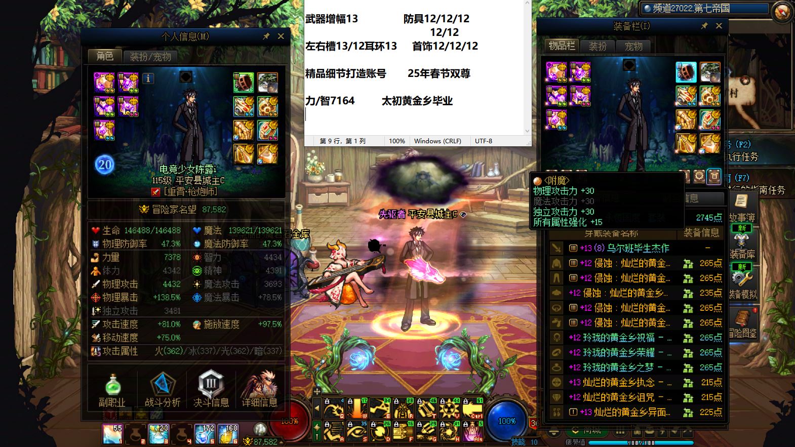 32811吉林1区【25年双尊】收集箱【多个特色宝珠角色】细节看图!25年双尊武器耳环增幅13全身增13/12细节完美龙透男大枪+25年双尊武器13右槽增幅12做操增幅11四件增幅10机甲龙袍剑魂+武器12龙袍鬼泣+龙袍征战者,多个天空搬砖小号,可C可搬砖,未央处女系列,喜欢别错过!