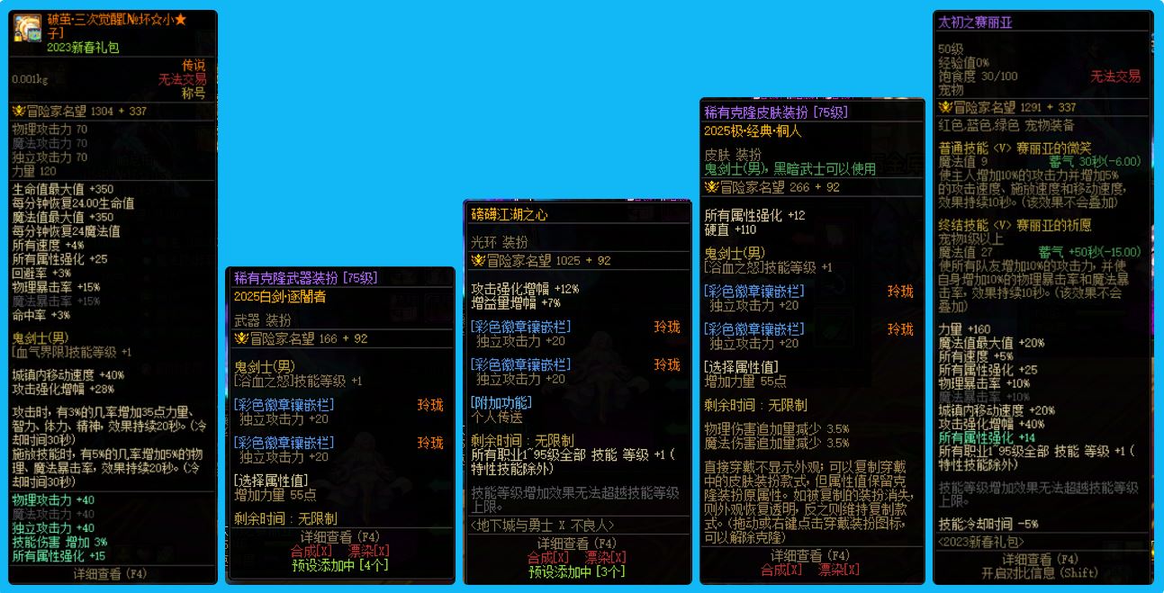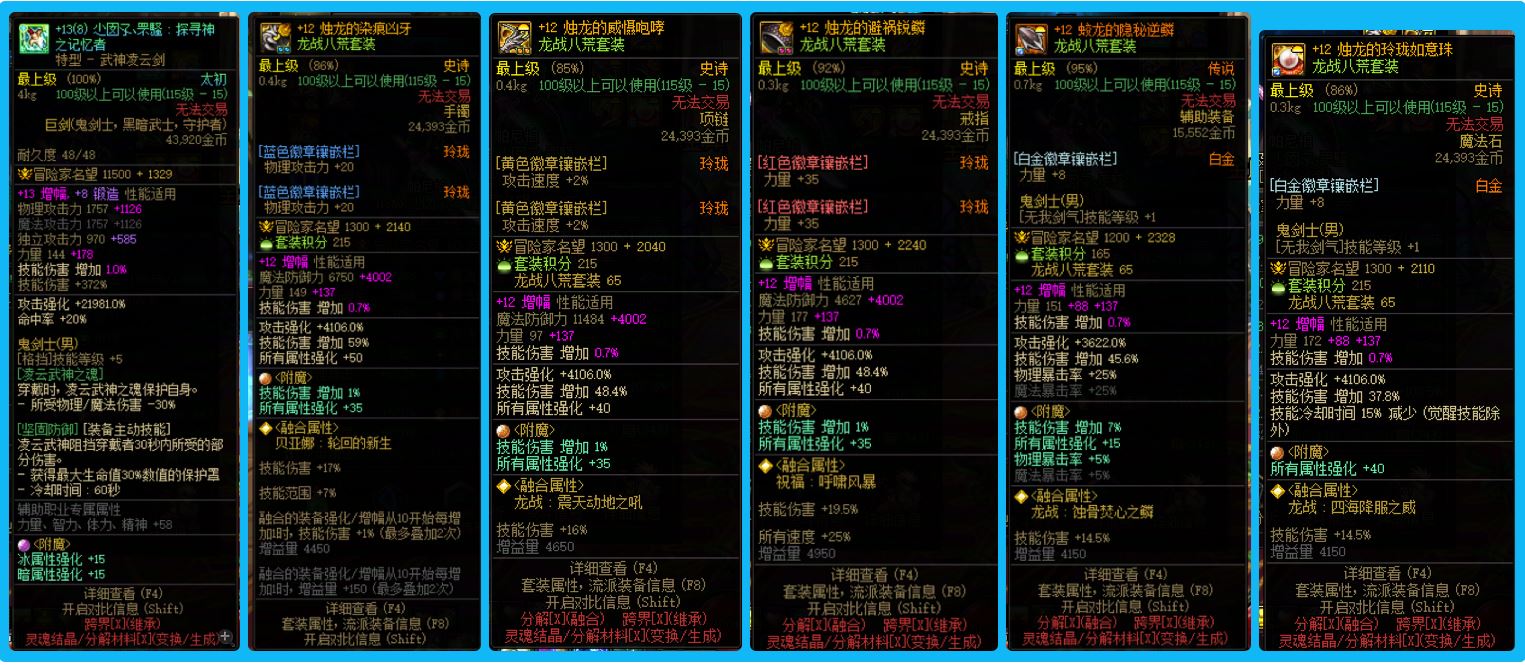 30136重庆一区【2个25年双尊】【多个桐人白剑装扮】【4个增幅12+5个增幅11+3个增幅10】多角色连体主C!特色齐全!细节看图!!!25年双尊武器增幅13全身增幅12龙透战法+24年双尊武器13全身增幅12龙透桐人剑魂+24年双尊全身增幅12龙透桐人白剑狂战+25年双尊全身增幅12龙透女弹药+右槽戒指增幅12全身增幅11特色齐全龙袍奶妈+全身增幅11神兽龙袍刃影+全身增幅11龙透女气功+武器13全身增幅11龙袍男大枪+全身增幅11上衣增幅10桐人白剑修罗+武器增幅11全身增幅10龙透暗殿骑士+12武器耳环增幅11全身增幅10男驱魔+全身增幅10宝珠齐全奶爸,强力主C,上手即变大佬,多角色连体随意玩,主号首选! 喜欢别错过!!!