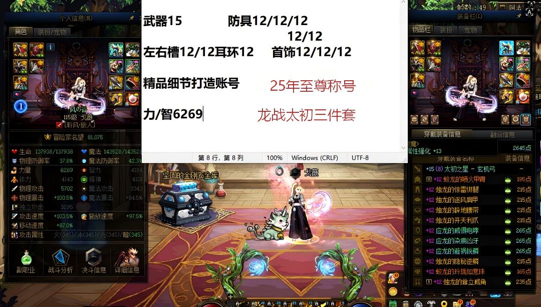 30342西南二区【15武器】【未破凶】【1个增幅12+2个增幅11+多个增幅角色】细节看图!!【25年单尊武器15全身增幅12龙透旅人+全身增幅11龙袍缪斯+武器锻8全身增幅12/11龙透女弹药】好玩不累!喜欢别错过!!!