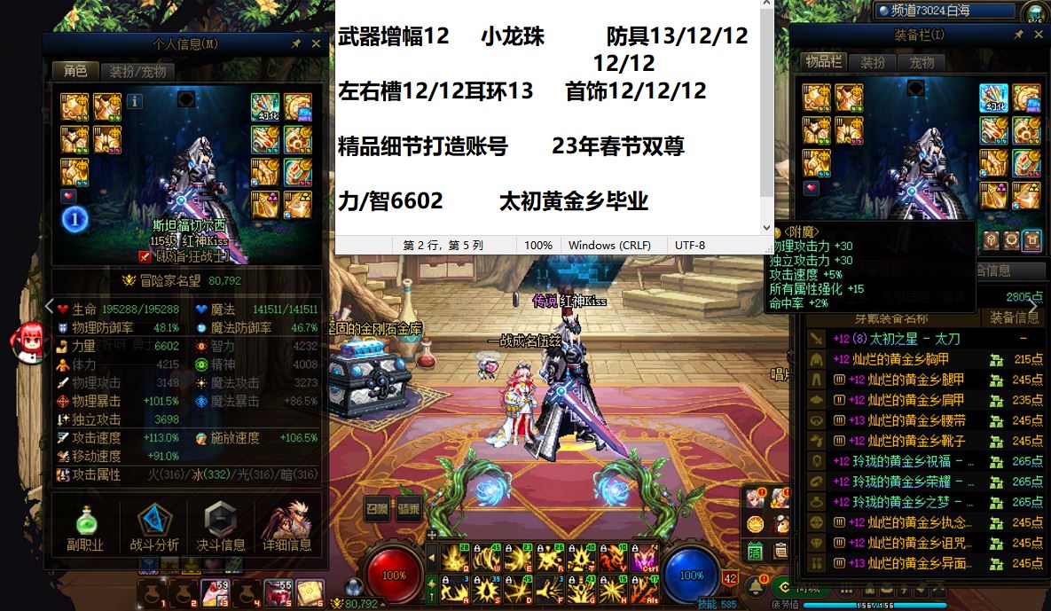 30467陕西一区【小龙珠】【1个增幅12+4个增幅11】细节看图!【23年双尊武器小龙珠增幅12全身增13/12龙袍大魔神+22年双尊武器13全身增幅12/11龙袍鬼泣+22年单尊全身增幅11耳环强化13龙袍修罗+武器13耳环强化12全身增幅11女气功】好玩不累 也可搬砖 喜欢别错过!!!