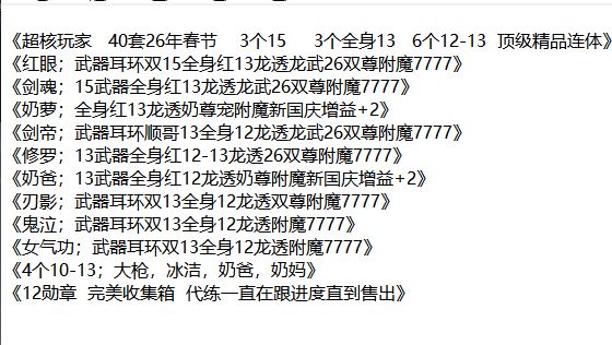 广东2《超核玩家 40套26年春节 武器耳环双15红眼顶级精品连体 详情以截图为准》《⭐玩的是青春⭐玩的是情怀⭐玩的是回忆⭐而不是游戏本身⭐》