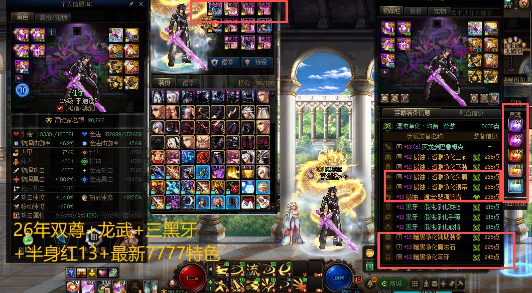 F107【夸五精品连体+1个红13(差几件)+9个全红13-12+6个全身红12-11+鬼剑士连体+奶连体+超一线进度+迷雾+最新新春10套+16套最新国庆+大号全员最新特色+3个龙武+满收集+左槽秘宝有材料随时准备可以做+仓库一万多妖气残痕】【26年双尊剑魂全身红13-12+武器耳环特殊部位红13+半身红13+三黑牙+龙武+7777最新特色】【25年双尊鬼泣全身红12+13武器++7777最新特色】【阿修罗全身红13-12+7777最新特色】【狂战士全身红13-12+7777最新特色】【气功全身红12+武器13+龙武7777最新特色】【刃影全身红12-最新7777特色】【奶妈全身红12+最新增益附魔+奶尊】【小魔女全身红12+最新增益附魔+奶尊】【缪斯全身红12+最新增益附魔+奶尊】【奶爸全身红13-12+最新增益附魔+奶尊+龙武】【契魔者+大枪+剑影+街霸4个全身12-11-13武器】(2个全身红12-11奶爸+奶妈)送一大堆高名望搬砖号