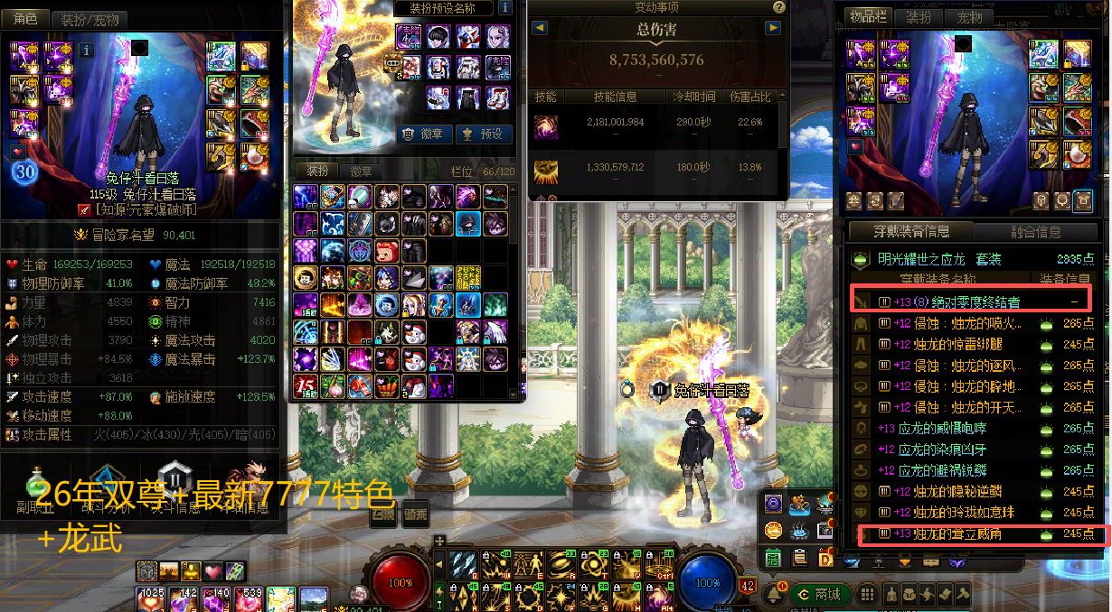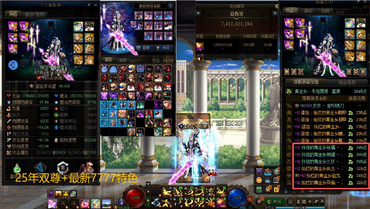 F105【夸6精品百亿伤害俱乐部成员+精品连体+全员最新7777特色+2把龙武+多把13武器+26年套20套+25年套20套+国庆16套+3个全身红13-12+3个红13-12-11半身12+8个全身12-11+满收集箱++理财号,特色齐全】