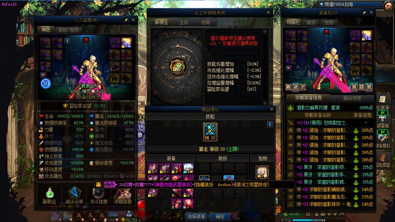 跨3B重庆1区-超核光环加持,超多桐人连体+Archer+不良人等绝版天空,外观党终极圆梦!勋章12毕业,未央未破凶,26收集箱满配,仓库海量深渊票+深渊令牌,备战新版本无忧。礼包拉满无短板26春节40套直接拉满,最新国庆多轮拉满,账号底蕴直接拉满!核心配置炸裂4龙武在手,5个红12-13车头(1个缺2件),带领32个红11角色(个别差1-2件)+8个红10角色,全员进度在线、附魔拉满,无混子!主C天团26双尊魔神全身红12-13,龙武+3黑牙太初+野猪武器,调试97,模拟伤害135亿,秒伤碾压,三大26双尊阿修罗均全身红12-13,其中2个带龙武,输出拉满、阵容整齐。专属亮点阿修罗24连体,情怀与实力兼备,打团、搬砖、收藏全适配。福利拉满截图里所有玉全部赠送,上手即巅峰,无需额外打造,直接解锁满配体验,详情请看图!