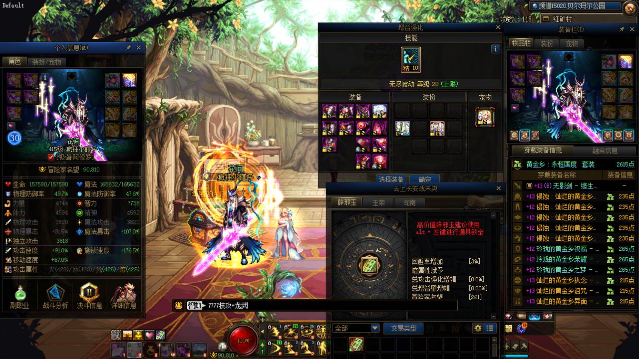 跨1 k956 26新春20套,收集箱满,迷雾30级。1个13-15、3个12、5个11、2个10。26双尊红13-14剑魂,武器15,7777技攻+龙武,满精度秘宝左槽,模拟178亿。26双尊红12-13阿修罗,武器+特殊红13,7777技攻+龙武。25双尊红12气功。红12-13奶萝。25双尊红11-12刃影。后面角色打造看截图。