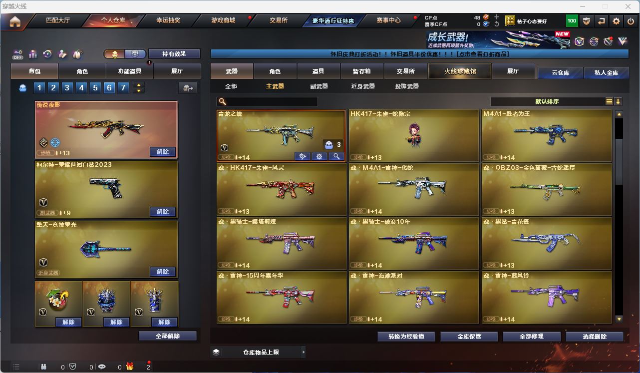☆DNF+CF☆陕西1【三凌云志+四守望!15套龙袍!两把红13武器!五红13-12六红12-11】红12-13气功、红12-13剑魂、红12-13魔神、红12刃影、红12奶爸!红11-12奶妈、红11修罗、红11啪啪、红11战法、红11缪斯、红11奶爸!【84V】200幻神+音效+双皮!传说夜影!云悠悠+雨墨!白虎之魄!青龙之魄!云龙套!竞技套!动感套!机械穹宇!G36幻影!6烈6盘+小刚+炎龙!USP天巧!柯尔特-世冠白鲨!唐刀+蝴蝶刀