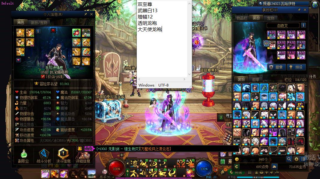 30365-广东1区-精品【2025年1个双至尊/2套国庆/收集箱/神器武器装扮/超多刀剑神域系列皮肤】【四太初无影剑缘生劫灭首选首饰剑神】【1个增幅12/1个增幅11】【1把13武器】【3套龙袍】【双至尊武器白13增幅12透明龙袍大天使龙袍剑神】+【增幅11龙袍缪斯】+【增幅3-10透明天空缪斯】剑神包袱黄金乡戒指可以跨界给缪斯凑成一套