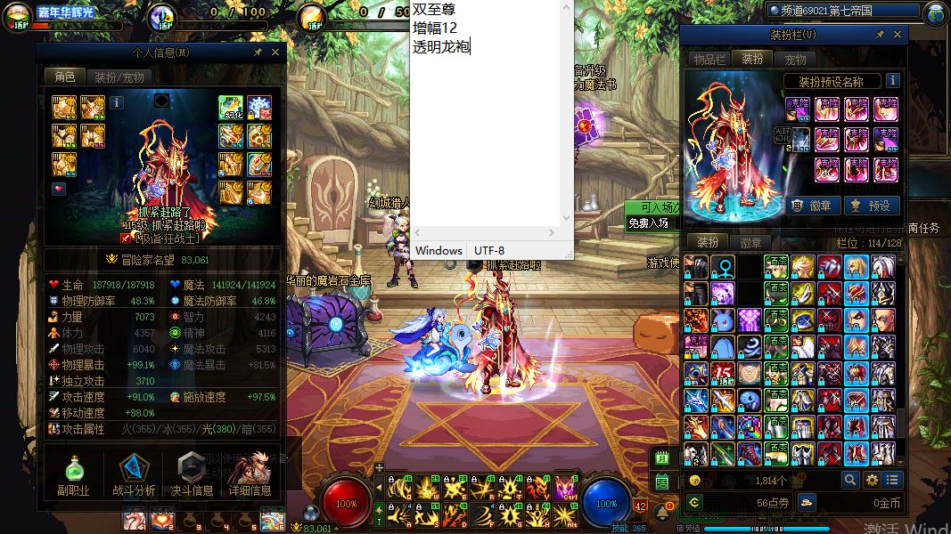 30619-河南3区-精品连体高端必玩入坑及上手【金刀+黄金乡三角套毕业首饰34e模拟伤害魔神/三黄金乡首饰25e模拟伤害剑神】【2024年1个双至尊/收集箱】【1个增幅12/2个增幅11/6个增幅10】【3把13武器】【6套龙袍】【24年双尊增幅12龙透魔神】+【23年双尊13武器增幅12-11龙透大天使龙袍剑神】+【增幅11龙透大天使龙袍奶爸】+【13武器增幅10大天使龙袍女气功】+【增幅10/7件龙袍武神】+【12武器增幅10天空刃影】+【增幅11-10天空缪斯】+【12武器增幅10透明天空阿修罗】+【12武器增幅10透明天空男弹药】