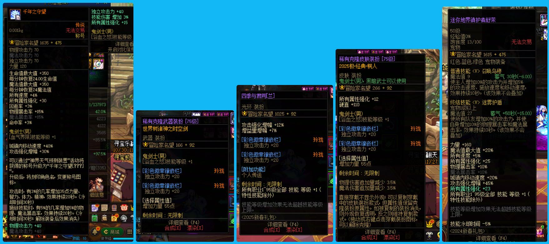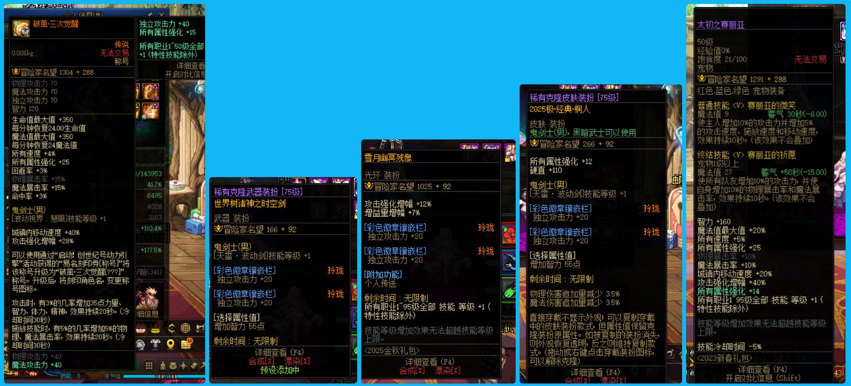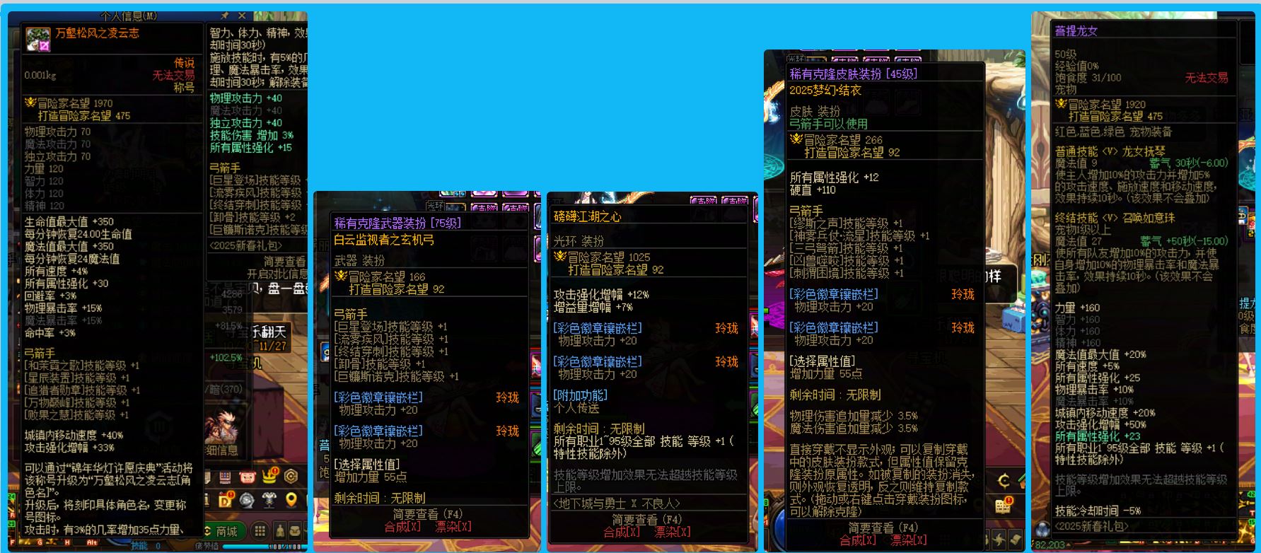 30635-东北一区【25年3个双尊+国庆10套】【双15武器+增幅15耳环】25年双尊武器15全身完美增幅12两件增幅13龙透细节打造齐全丹青剑魂+25年双尊武器15耳环13全身完美增幅12头肩增幅11旅人+25年双尊武器戒指13其余完美增幅12女气功+全身完美增幅12两件增幅13奶妈+24年双尊耳环13全身增幅12-11桐人魔神+全身增幅11耳环13修罗+耳环增幅15女格斗(可等转职书)!超值牌面账号!账号整体基本打造完美!拿到手就是大佬!无需再次投资!喜欢千万别错过!区好+号好+职业好!!
