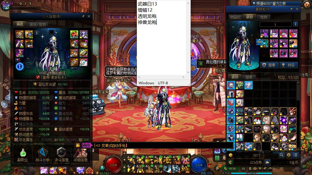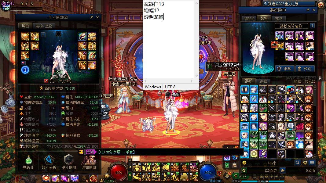 32417-黑龙江1区-精品连体高端必玩便宜实惠好玩不贵【5个增幅12/1个增幅11/1个半身增幅11半身增幅10/1个增幅10】【14武器】【7把13武器】【8套龙袍】【双至尊武器白14增幅12透明龙袍剑神】+【13武器增幅12透明龙袍女气功】+【增幅12透明龙袍刃影】+【13武器增幅12透明龙袍神兽龙袍男漫游】+【增幅12神兽龙袍阿修罗】+【武器增幅13增幅12-11龙袍奶妈】+【半身增幅11半身增幅10大天使龙袍奶罗】+【13武器增幅12-10透明天空女弹药】+【12武器增幅7透明天空奇美拉】+【13武器增幅7-11天空旅人】+【13武器增幅7-10透明天空男气功】+【13武器透明天空蓝拳】
