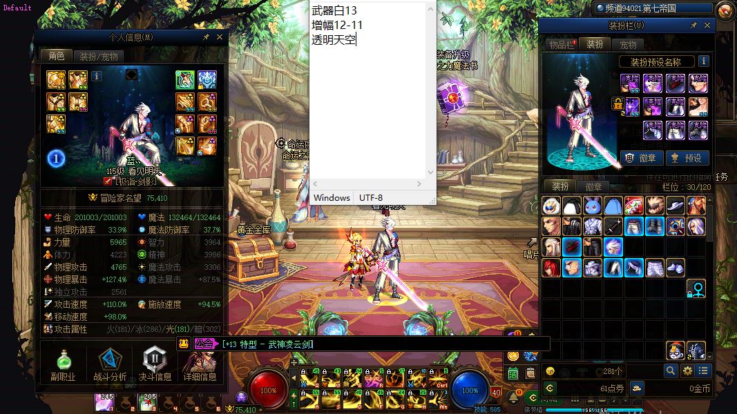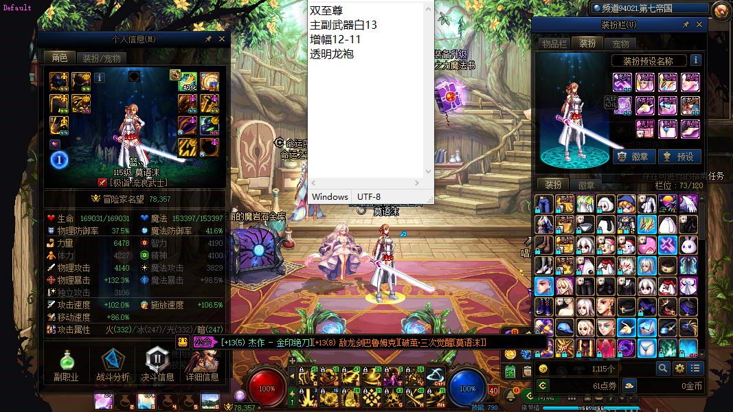 30107-湖北2区-精品连体新玩家入坑首选便宜实惠好玩不贵【夏日收集箱、刀剑神域系列皮肤】【4个增幅12/8个增幅11/1个增幅10】【6把13武器】【9套龙袍】【双至尊武器增幅13增幅12透明龙袍女气功】+【增幅13-12机甲龙袍奶爸】+【增幅12龙袍奶爸】+【增幅12透明龙袍奶爸】+【双至尊主副武器白13增幅12-11透明龙袍剑帝】+【双至尊武器白13增幅12-11透明龙袍剑神】+【双至尊武器白13增幅12-11机甲龙袍女漫游】+【增幅12-11透明天空奶妈】+【增幅11透明龙袍奶爸】+【增幅11天空奶爸】+【增幅11天空奶爸】+【武器白13增幅12-11透明天空剑影】+【增幅10大天使龙袍协战师】