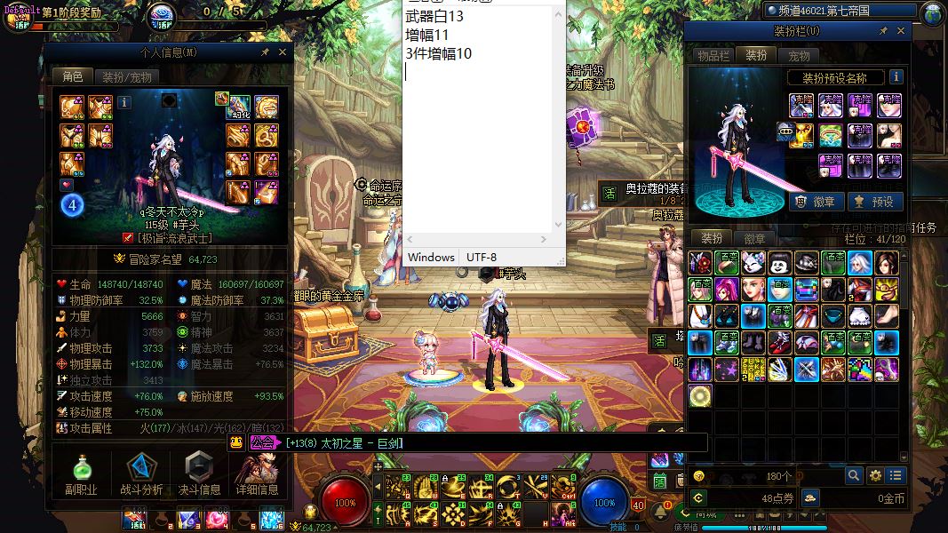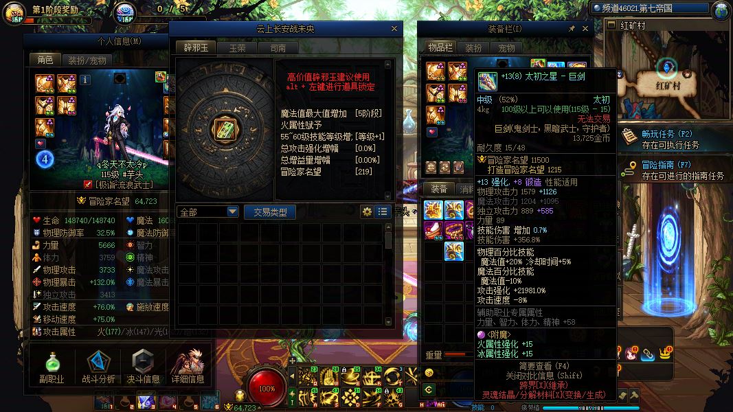 31705-西北1区-精品新玩家入坑首选可C可搬砖自给自足【13阶破凶】【1个增幅12/3个增幅11/1个增幅10】【4把13武器】【2套龙袍】【双至尊增幅12透明龙袍男大枪】+【13武器增幅11天空剑帝】+【增幅12-11龙袍刃影】+【增幅11透明天空奶妈】+【13武器增幅10透明天空战法】+【13武器透明天空男机械】+【13武器透明天空剑神】9个满级/13个110级角色
