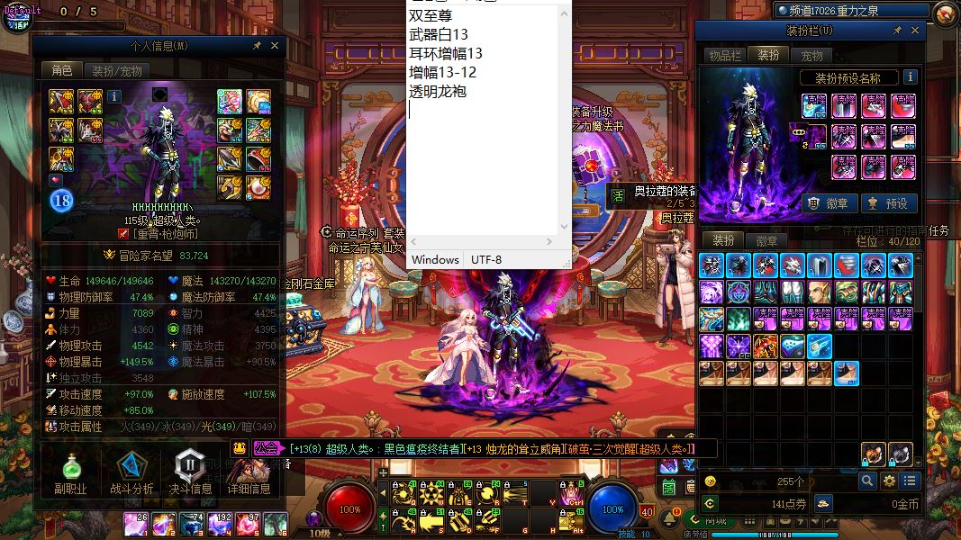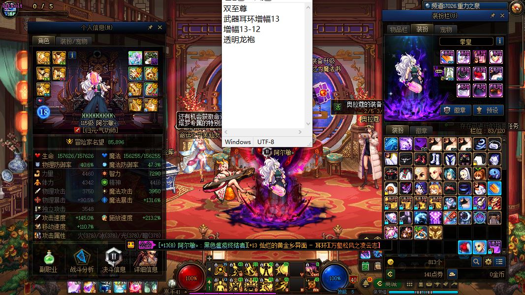 32060-重庆1区-精品连体高端必玩【2025年2个双至尊/夏日收集箱/龙武、刀剑神域系列皮肤】【5个增幅12/1个增幅11/6个增幅10】【10把13武器】【5个13耳环】【11套龙袍】【25年双至尊武器耳环增幅13增幅13-12透明龙袍魔神】+【25年双至尊武器耳环增幅13增幅13-12透明龙袍女气功】+【双至尊武器白13耳环增幅13增幅13-12透明龙袍男大枪】+【双至尊武器白13耳环增幅13增幅13-12神兽龙袍冰洁】+【耳环增幅13增幅13-12机甲龙袍奶妈】+【武器增幅13增幅12-11神兽龙袍刃影】+【增幅10、奶爸、妖护使、剑魔、女大枪、女气功、剑神】+【12武器增幅5-11透明天空剑帝】