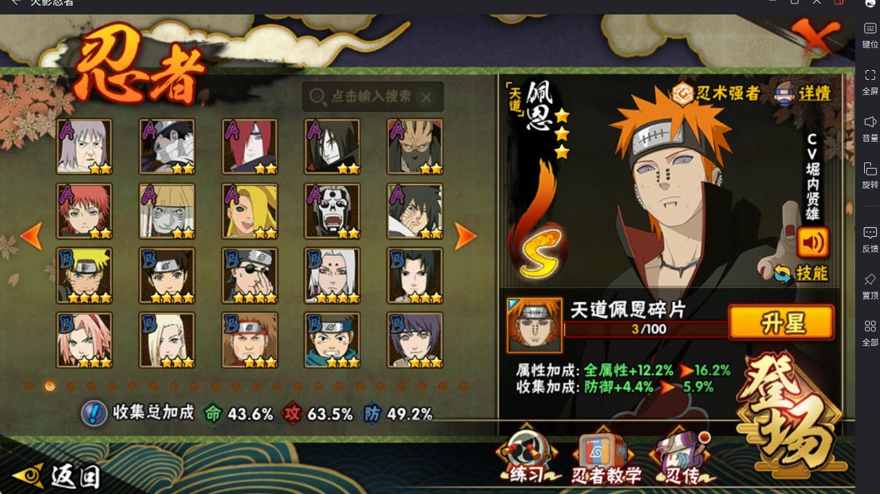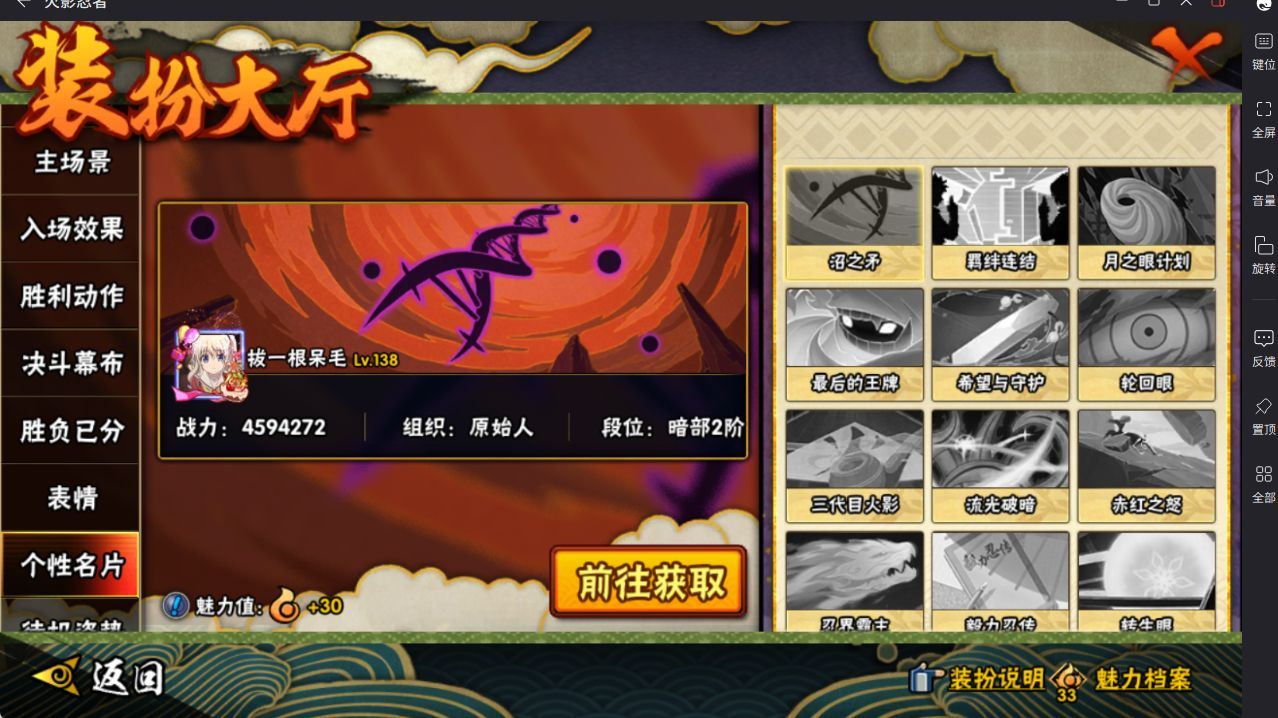 R51187 可二次安卓QQ3365区【v4】【459万战力】9S级忍者数-21A级忍者数【S级忍者】:宇智波鼬「须佐能乎」(3星),旗木卡卡西「须佐能乎」(3星),自来也「舞之豪杰」(3星),自来也「传说中的三忍」(3星),波风水门(3星),佩恩「天道」(3星),宇智波斑 「白面具」(3星宇智波斑「白面具」),波风水门「九喇嘛连结」(3星),漩涡鸣人·宇智波佐助(3星)【A级忍者】:长门「青年」(2星),迪达拉「秽土转生」(2星),大蛇丸「晓」(2星),飞段(3星),飞段「死司凭血」(2星),干柿鬼鲛(2星),迈特凯(3星),桃地再不斩「秽土转生」(2星),我爱罗「疾风传」(3星),蝎(2星),蝎「绯流琥」(2星),猿飞阿斯玛(2星),猿飞阿斯玛「秽土转生」(2星),宇智波佐助「须佐能乎」(2星),宇智波佐助「万花筒写轮眼」(2星),宇智波带土「暴怒」(2星),李洛克「忍界大战」(2星),秋道丁次「忍界大战」(2星),千代「近松十人卫」(2星),宇智波泉奈(2星),迈特凯「青春爆炸」(2星)各种道具详情看截图、低价出售找回包 赔、截图展示段位不代 表实际段位,如赛季更新等不可抗拒因素发生变化、时限道具不保证所剩时间、标题未写送点劵默认不送【卖号买号首选亿梦】