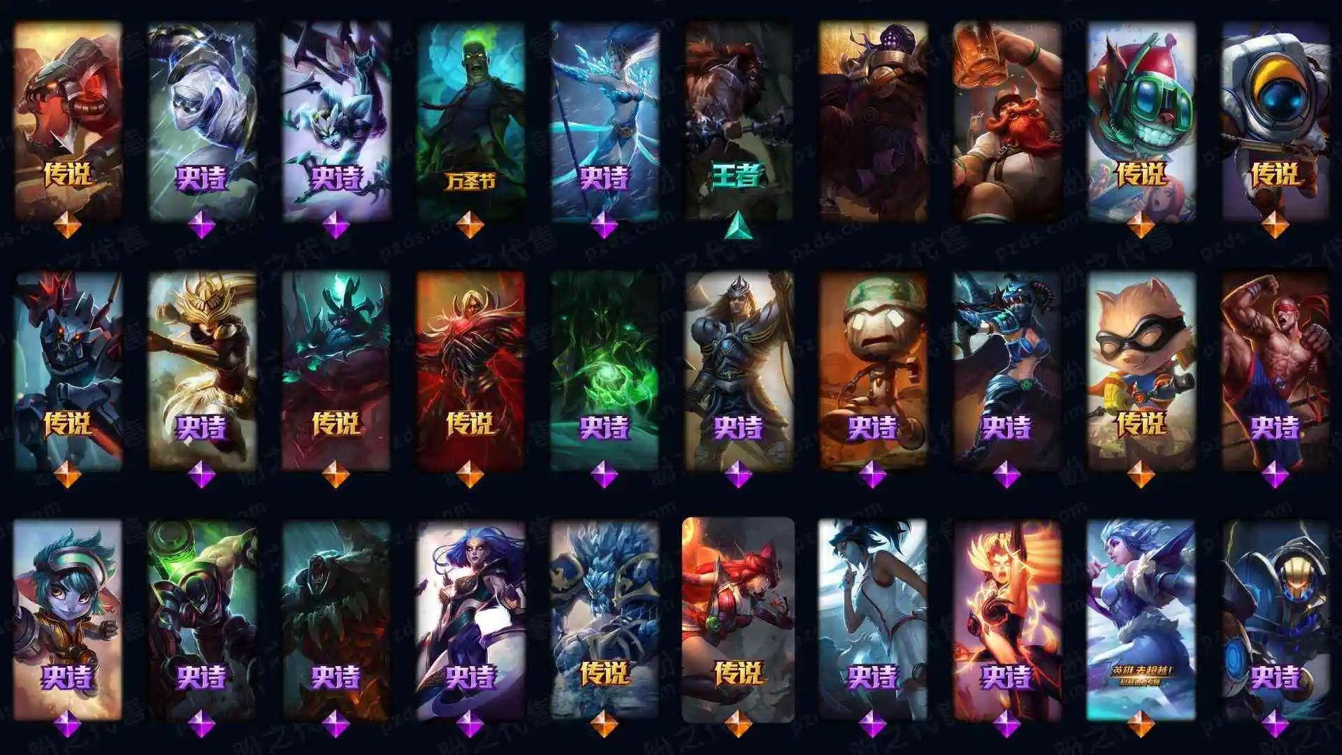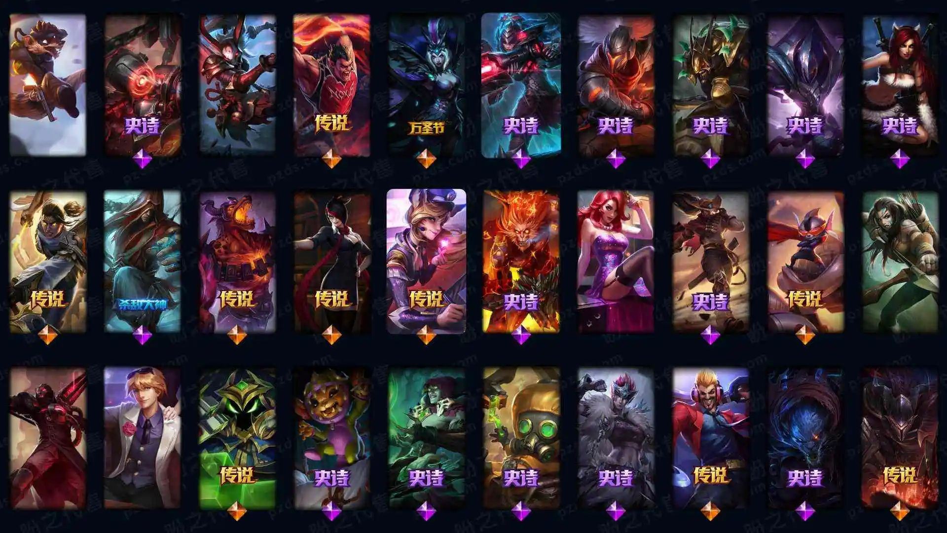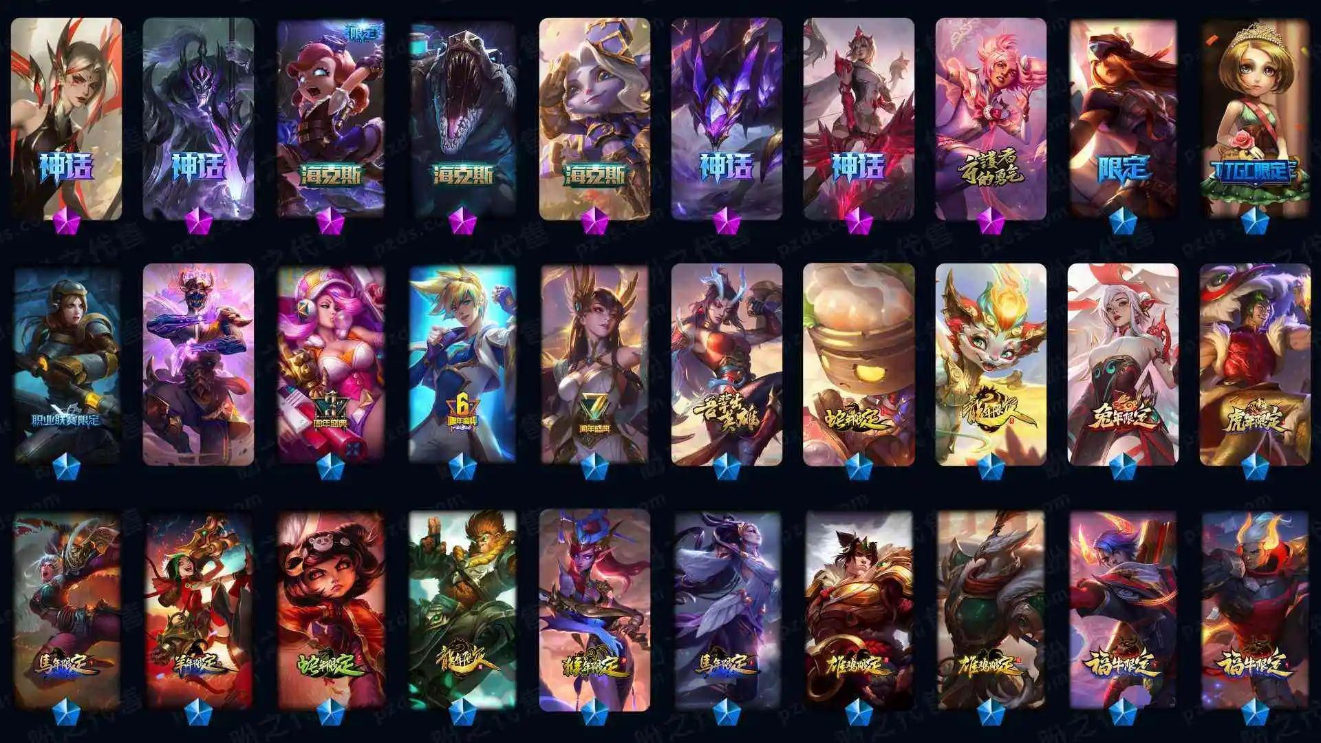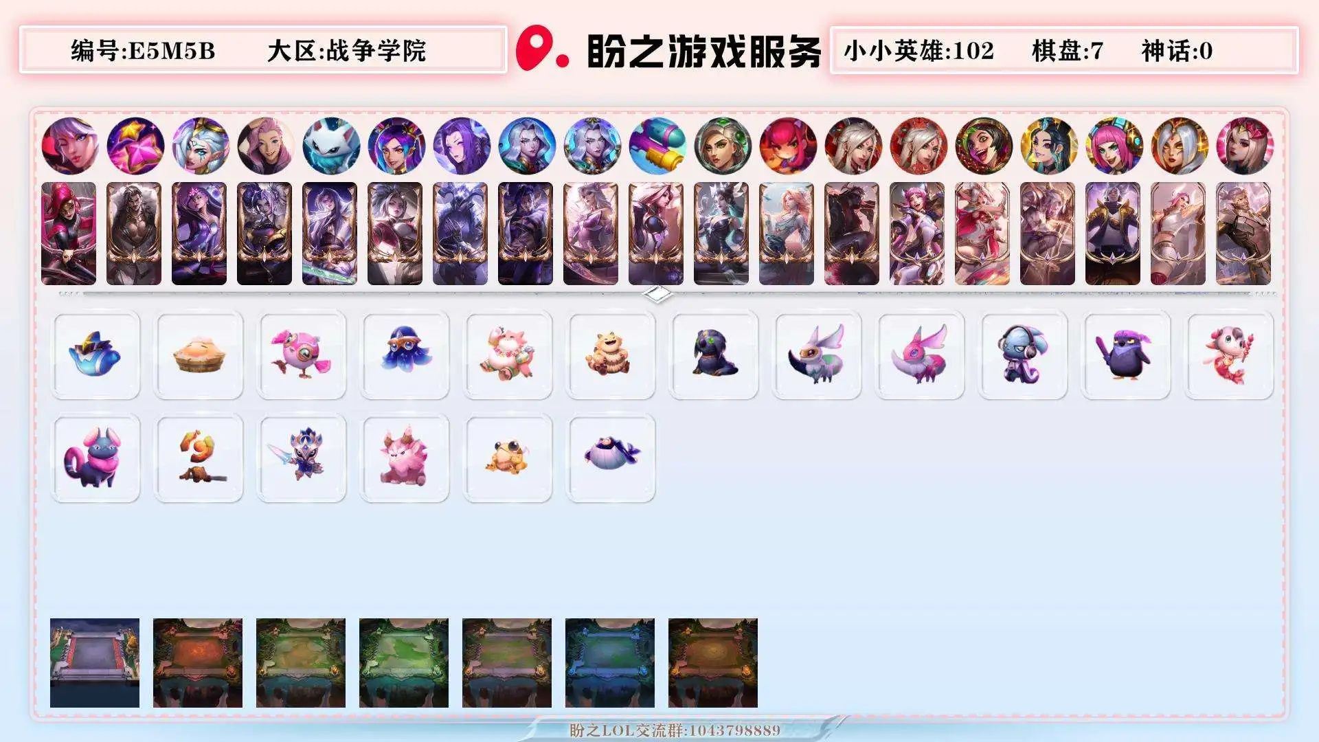 43500战争学院 778皮肤 591炫彩 27臻彩 41神话/114限定/90传说/172英雄 账号等级:2276